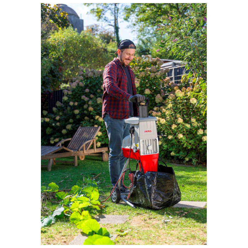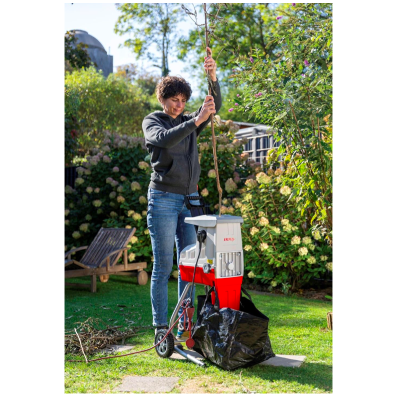 Broyeur à rouleaux pour une utilisation silencieuse et efficace dans le jardin : silencieux et sûr grâce au système de rouleaux sans rebond, les déchets sont introduits de manière uniforme et contrôlée dans le rouleau