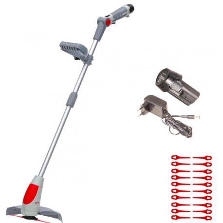 Coupe d'herbe sans fil : avec batterie (autonomie max. 60 minutes) et chargeur (temps de charge env. 5 heures)